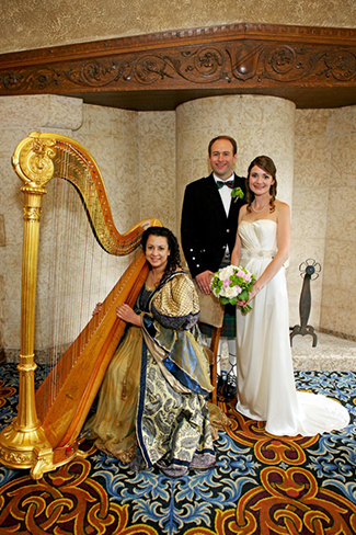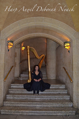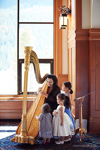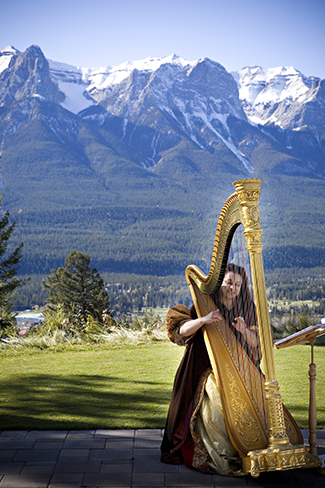 Harp Angel - Harpist, provides romantic, beautiful, versatile, personalized and ambient harp music for your wedding ceremony and/or reception in Banff, Lake Louise, Calgary and area. Harp Angel's beautiful Gold full-sized concert harp goes everywhere and offers a rich vast variety of music - Bach to Zeppelin, Celtic to contemporary, soft jazz to beautiful classical. Harp Angel welcomes special individual requests, especially your favourite special love song for the two of you. As an accomplished concert harpist, Deborah Nyack, trained under full scholarship at New York & Europe's finest music schools. Harp Angel has over 25 years of professional experience with weddings.